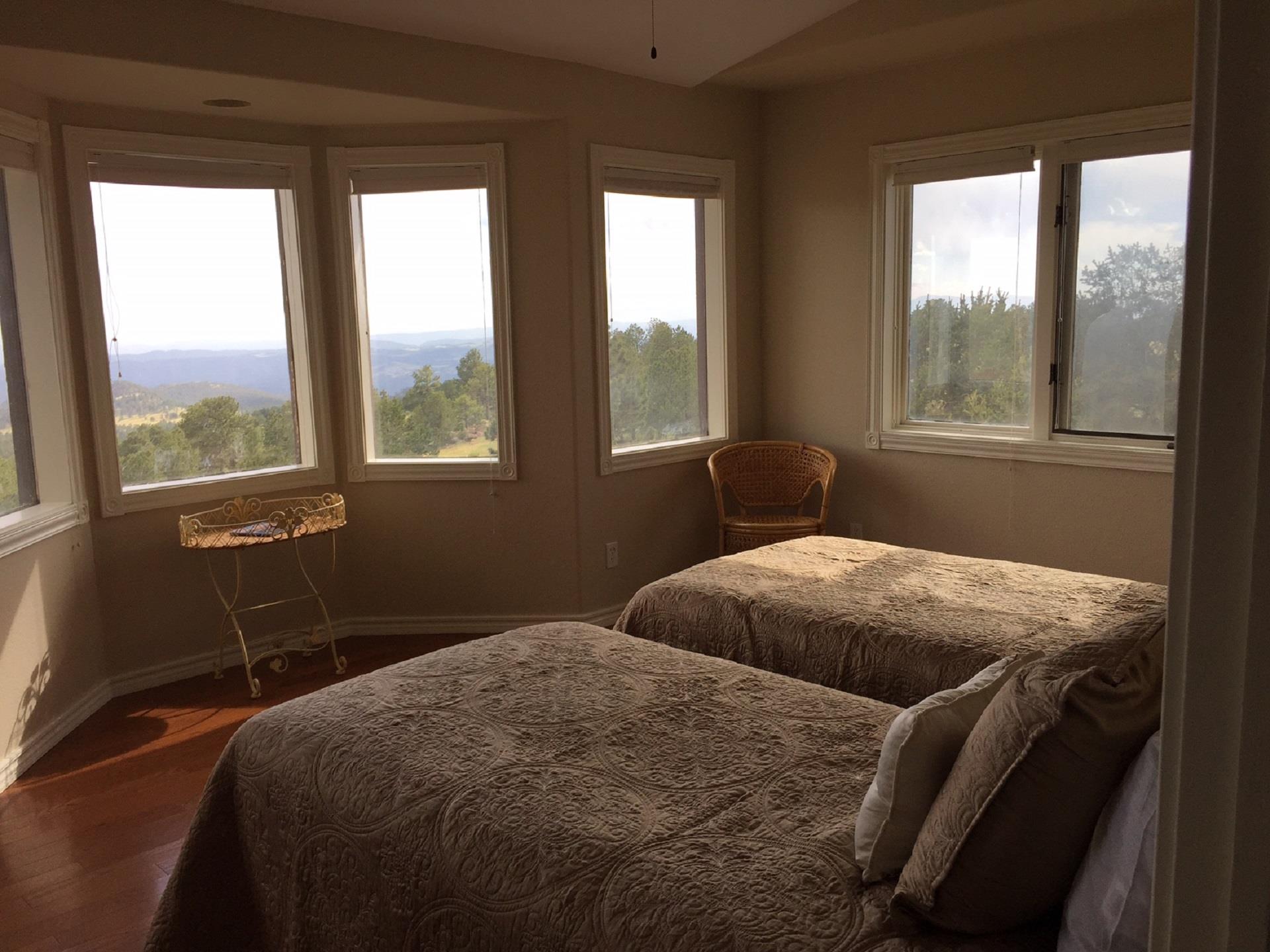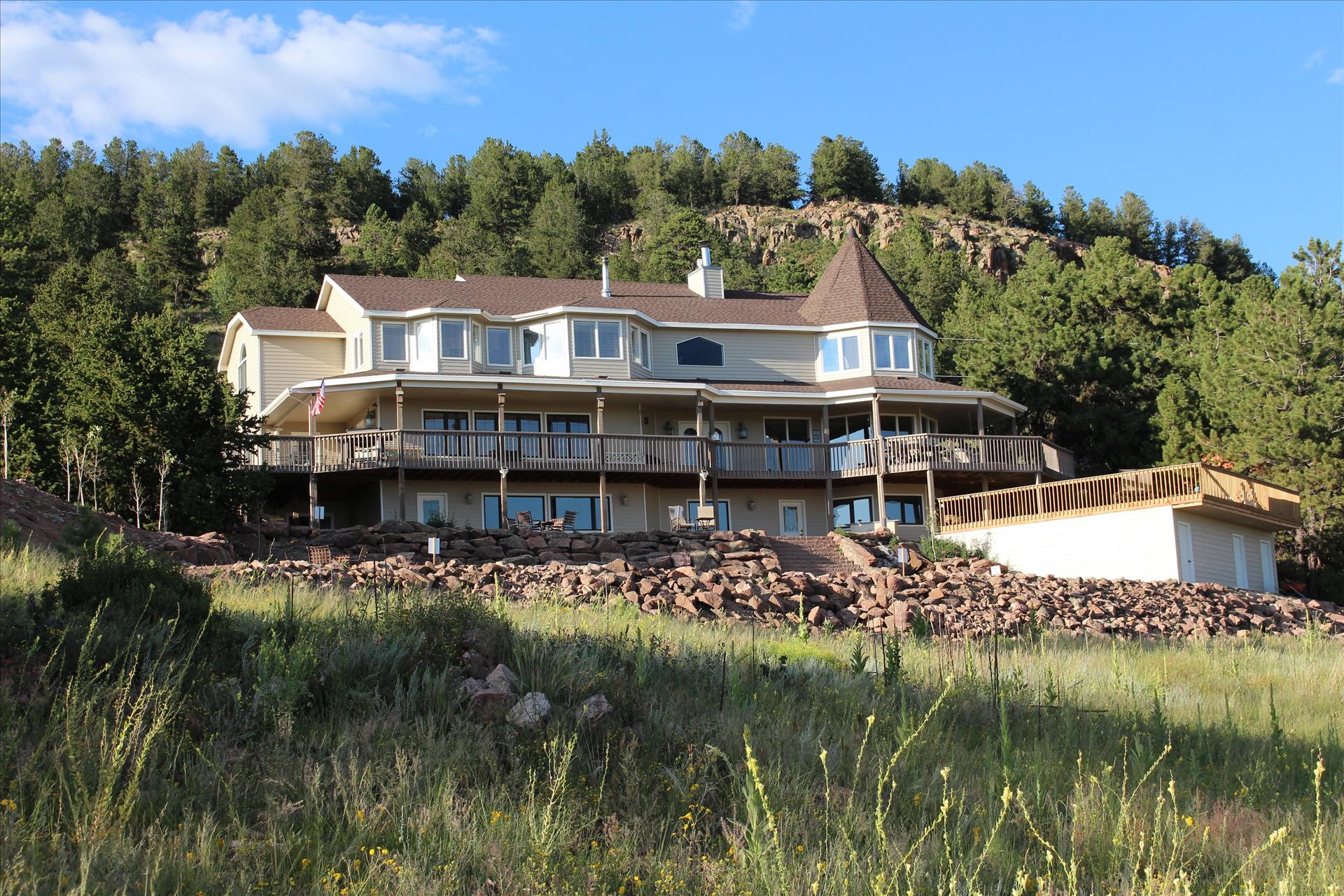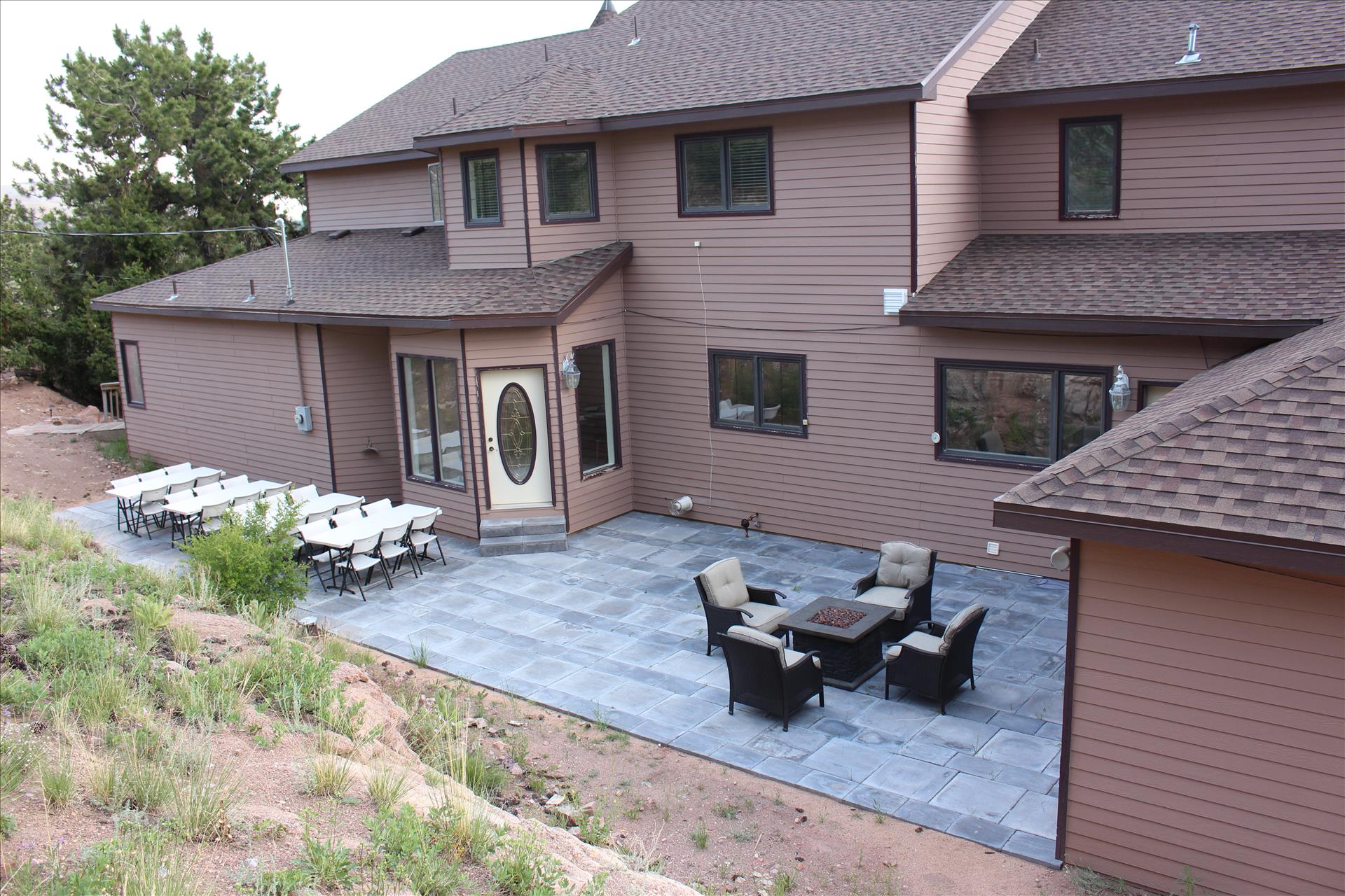 Alpine Vista Retreat is Cripple Creek's largest and most luxurious vacation rental. Built in 2003 as a Bed and Breakfast, each guest suite has a full attached bath with a hydrotherapy tub in most. We are no longer a Bed and Breakfast facility but the layout provides our guests with considerably more privacy and a much higher-quality experience than other vacation rentals. From the deck and most windows, guests enjoy unobstructed views of the Sangre de Cristo mountain range and with 8500+ square feet of living space and 27 contiguous acres, the property can accommodate virtually any group from family reunions, weddings, corporate retreats, conventions, hunting/fishing parties, etc. The property also features over 7000 square feet of outdoor living spaces including covered decks, large patios with water features, gardens, rock outcroppings, trees, etc. with ample patio furniture and a fire pit.